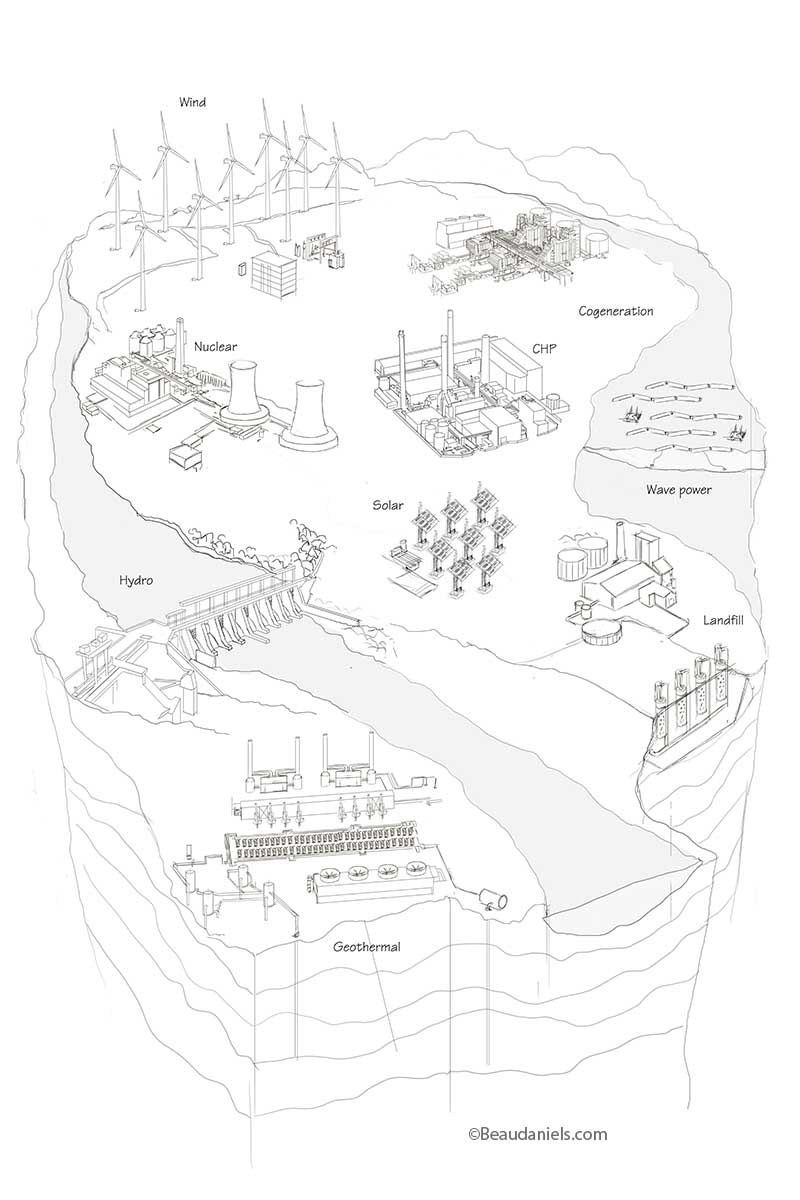 Sustainable or renewable energy sources, an illustration for Exxon/Mobil